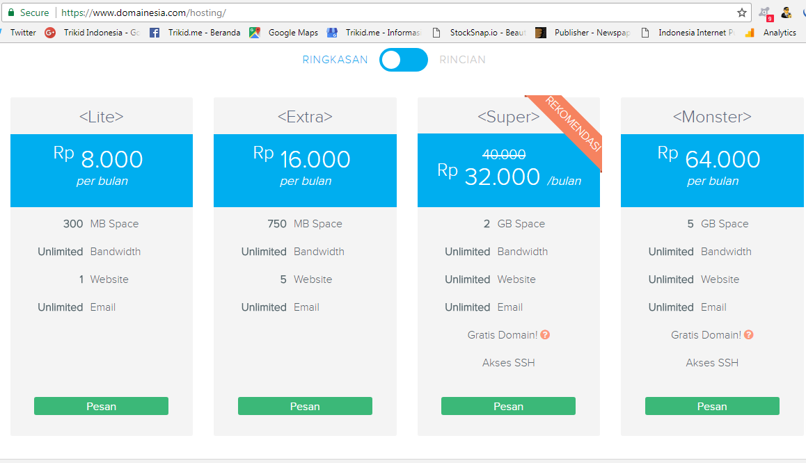 gambar di atas adalah salah satu jenis penawaran Hosting dari jasa penyedia webhosting Domainesia.com.